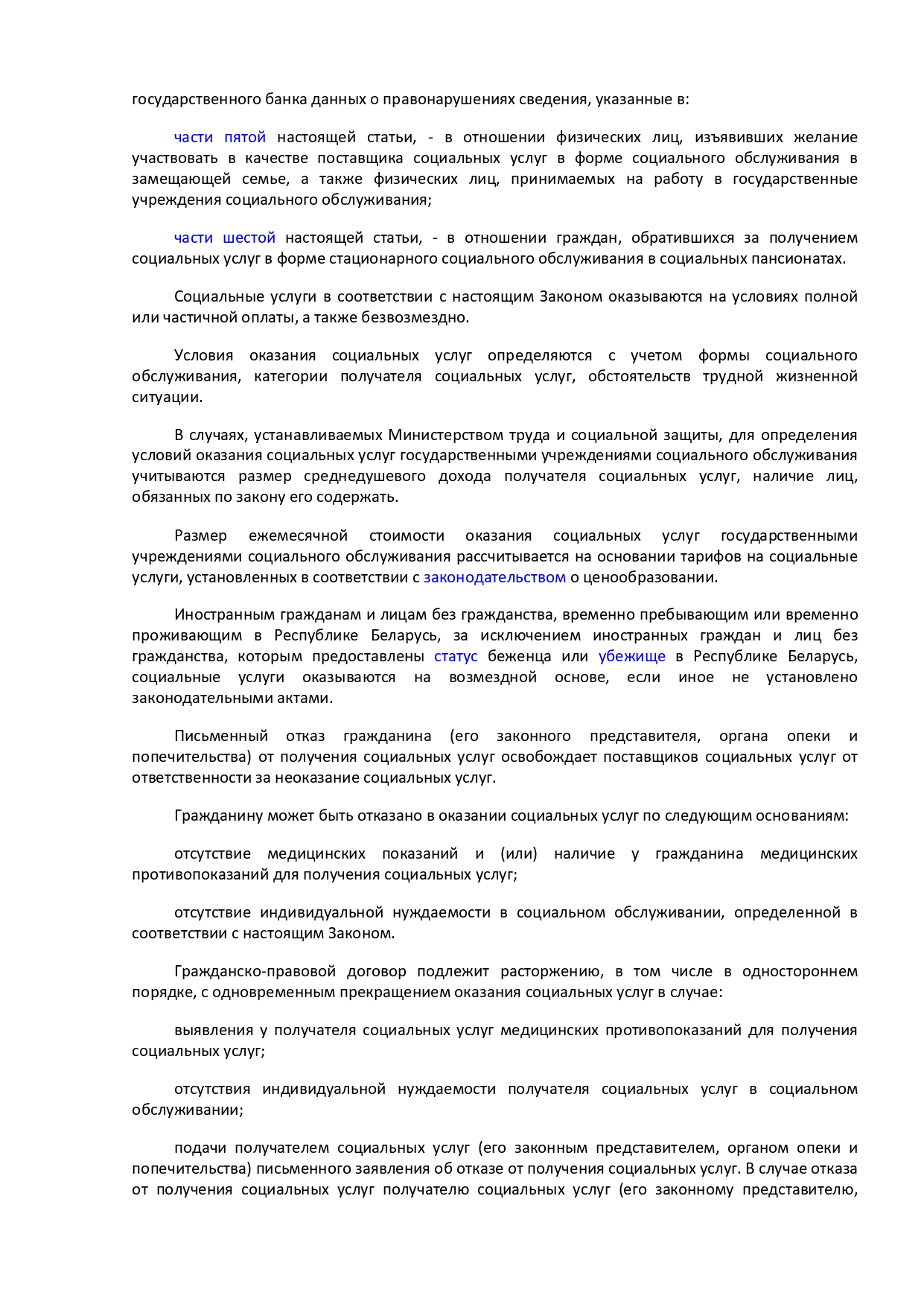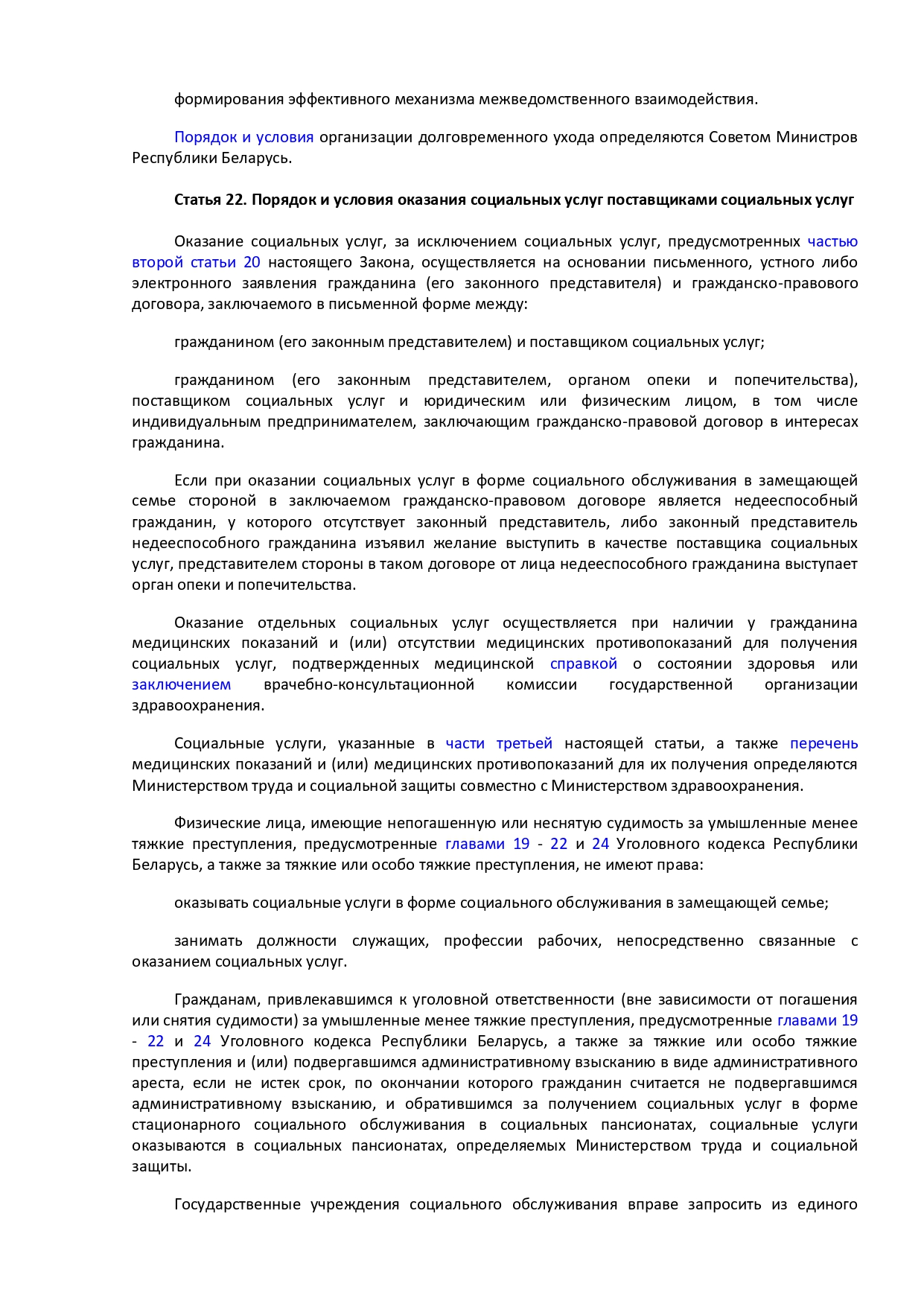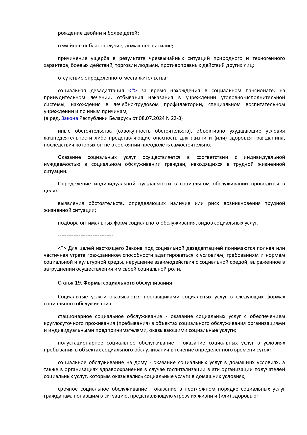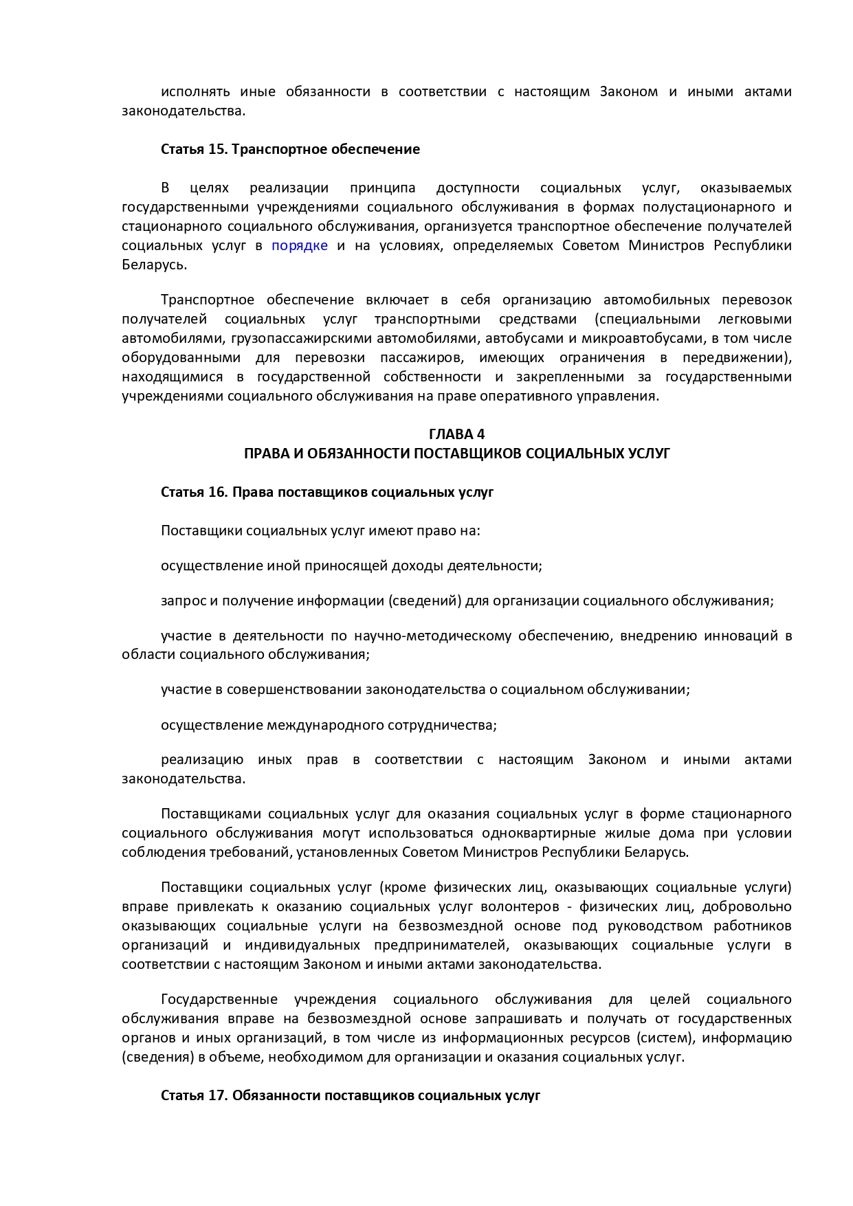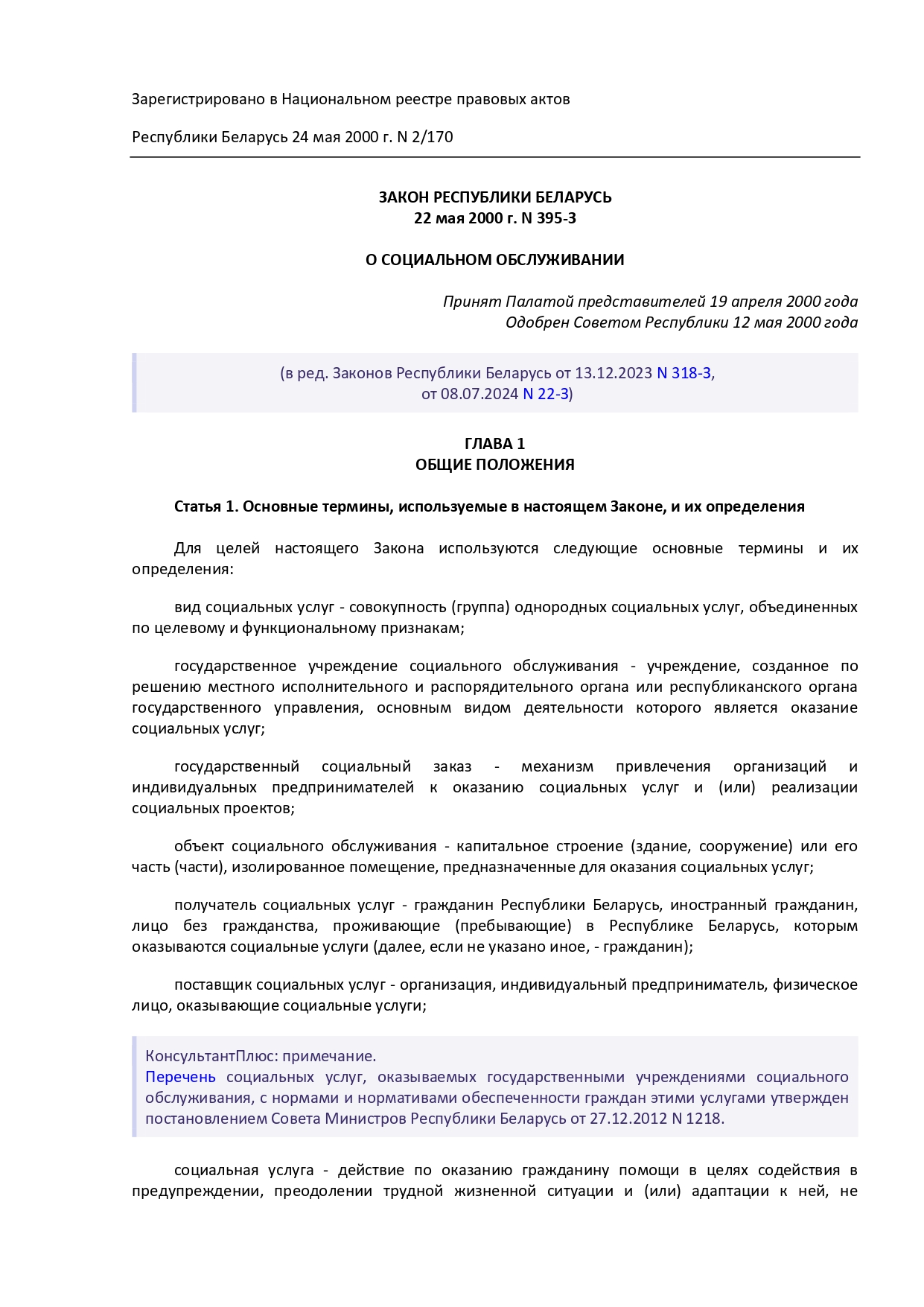 Закон Республики Беларусь 22 мая 2000г. №395-З "О социальном обслуживании"