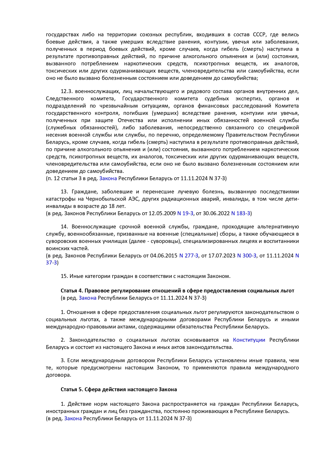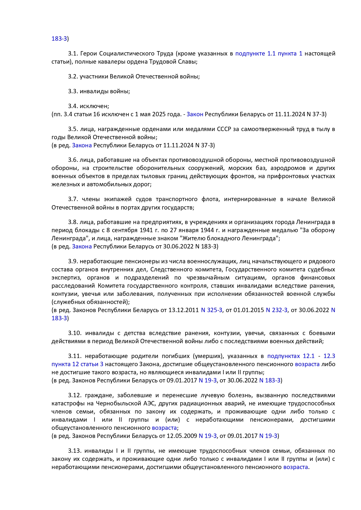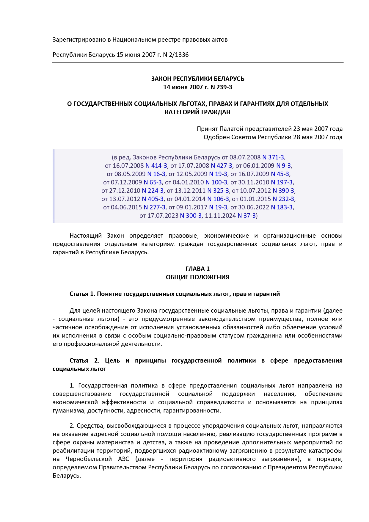 Закон Республики Беларусь от 14 июня 2007 г. № 239-3 "О государственных социальных льготах, правах и гарантиях для отдельных категорий граждан"
