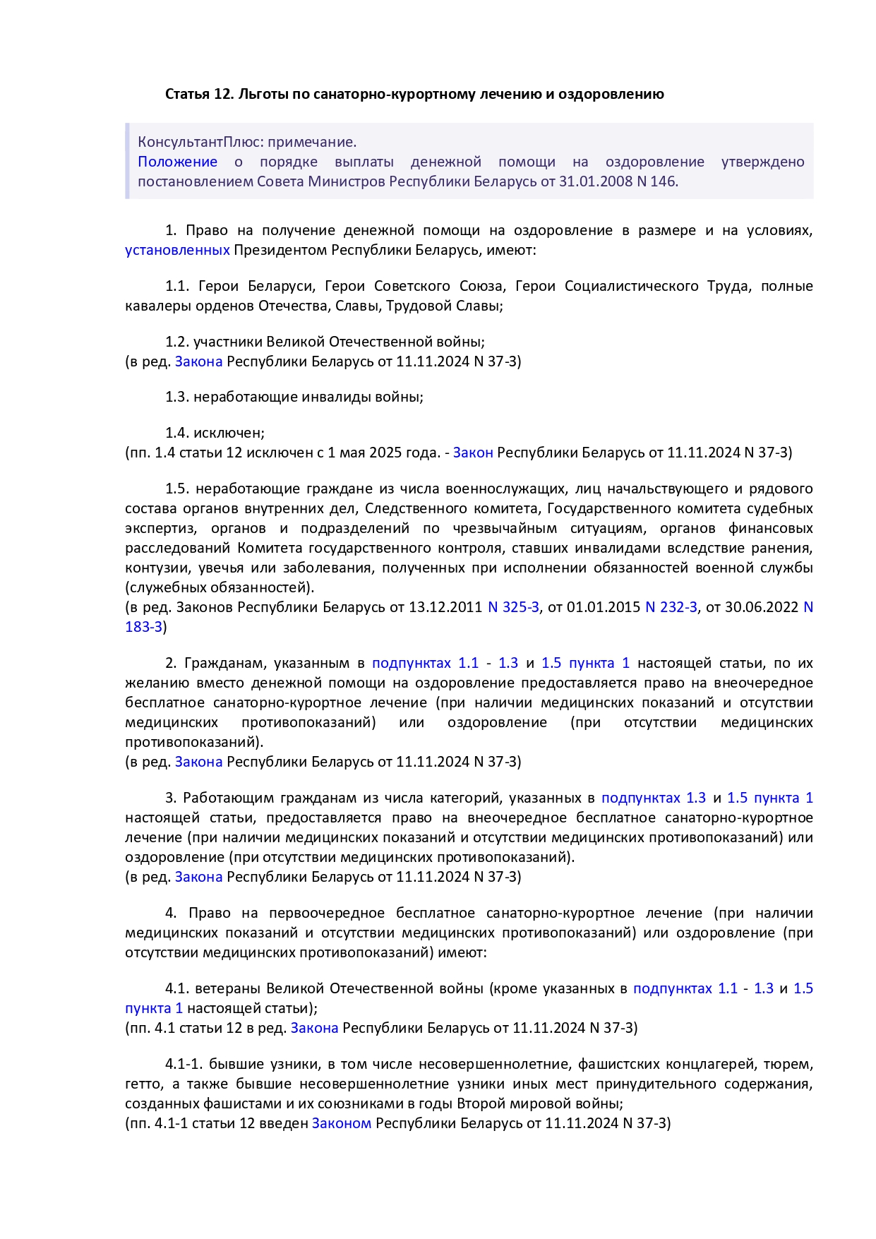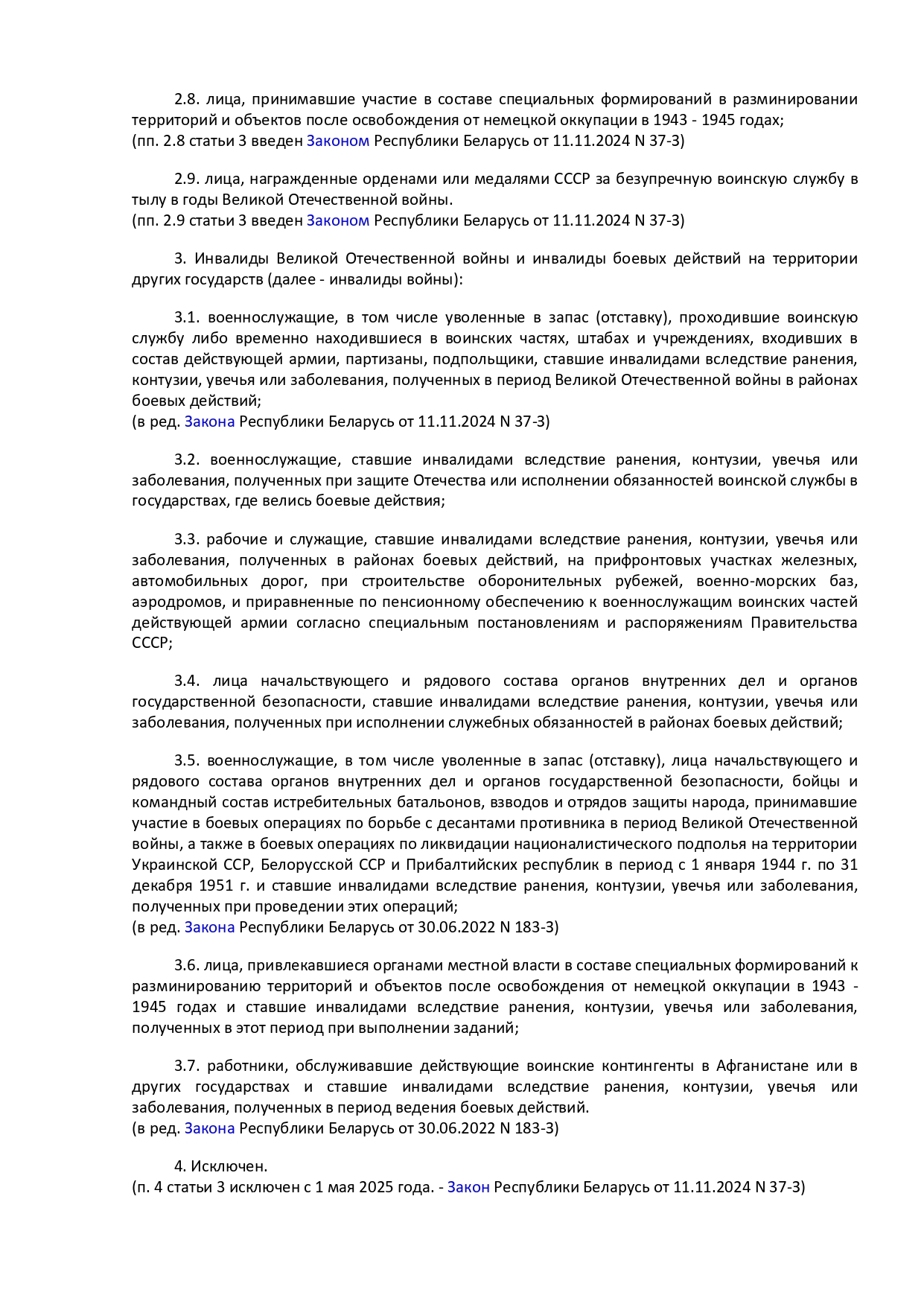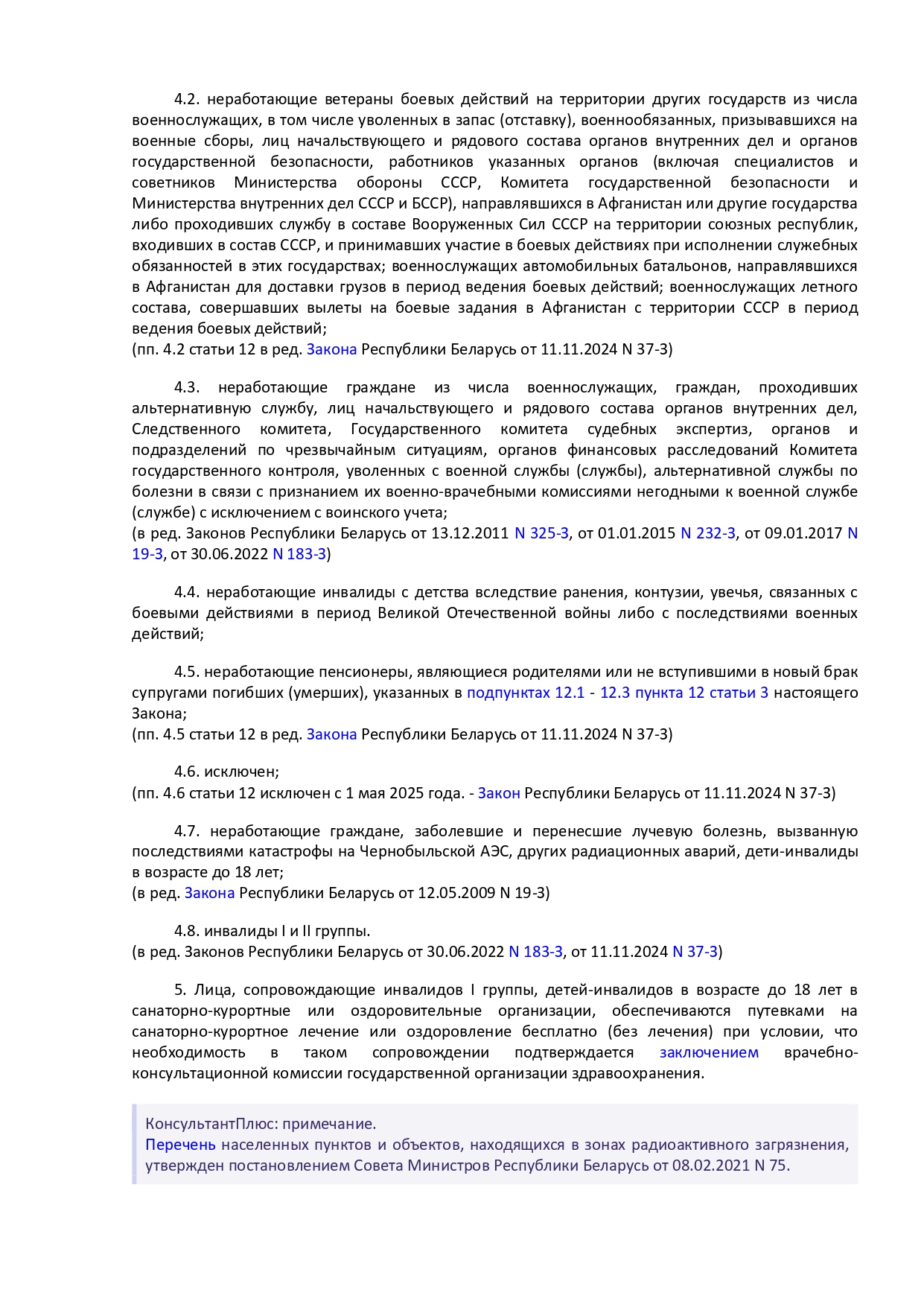 Закон Республики Беларусь от 14 июня 2007 г. № 239-3 "О государственных социальных льготах, правах и гарантиях для отдельных категорий граждан"
