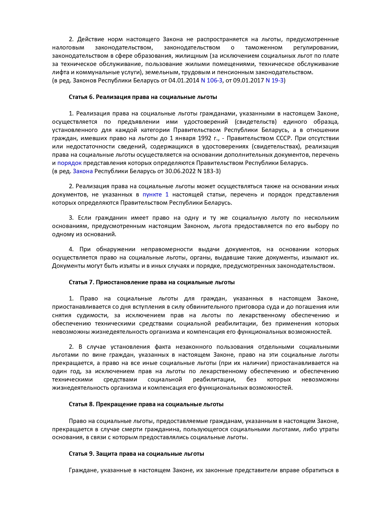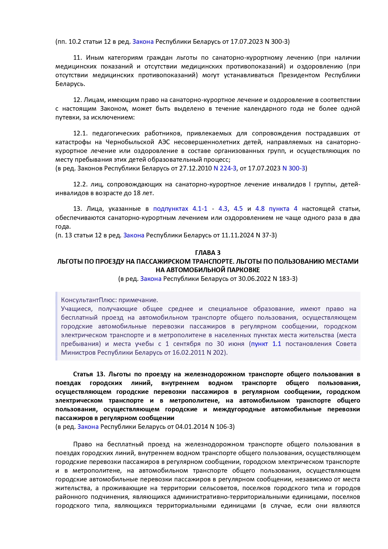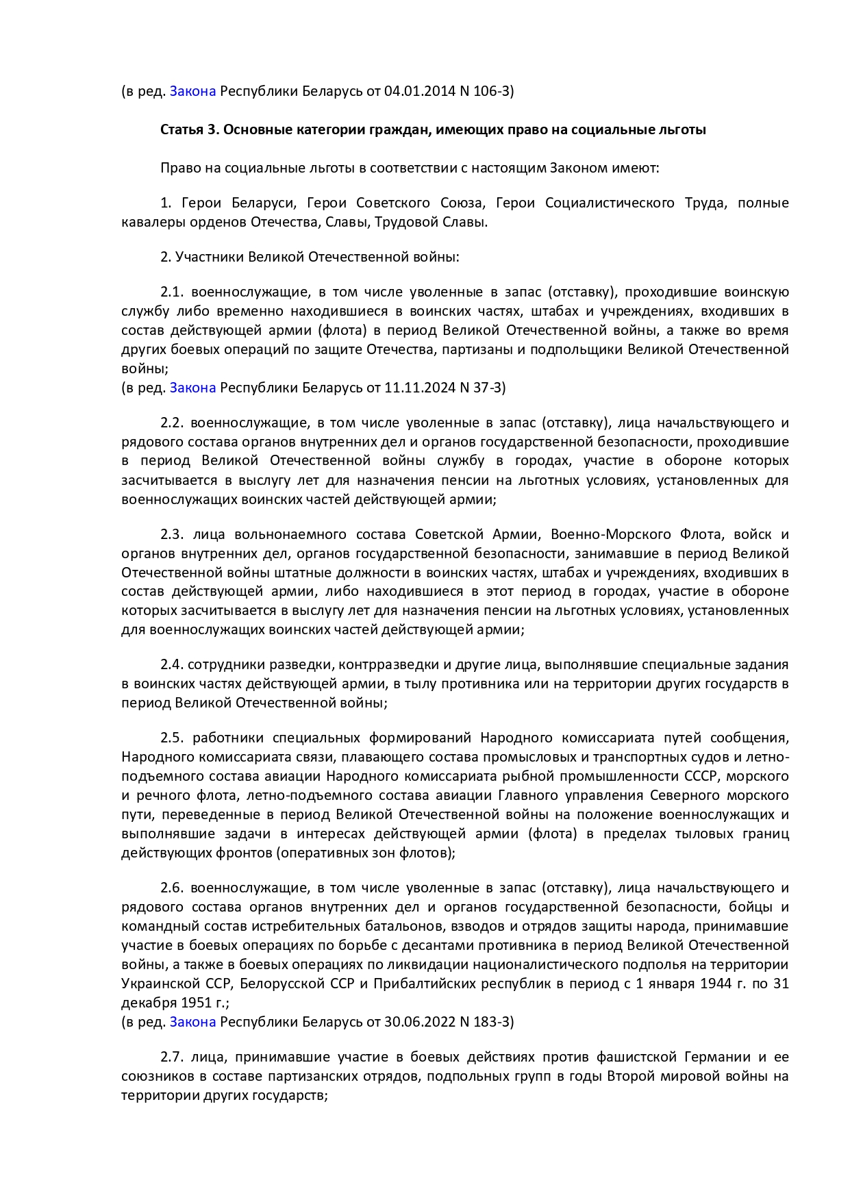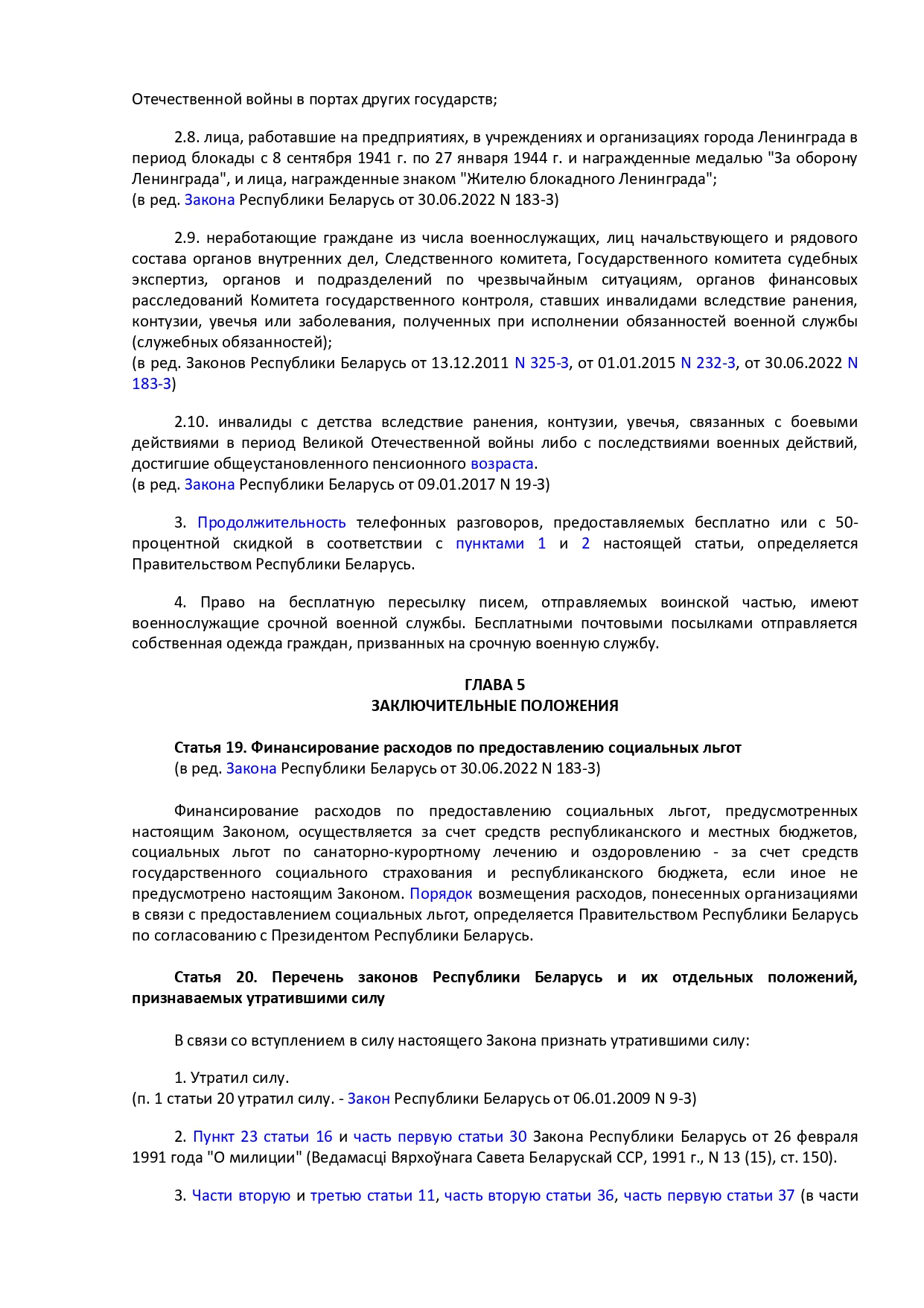 Закон Республики Беларусь от 14 июня 2007 г. № 239-3 "О государственных социальных льготах, правах и гарантиях для отдельных категорий граждан"