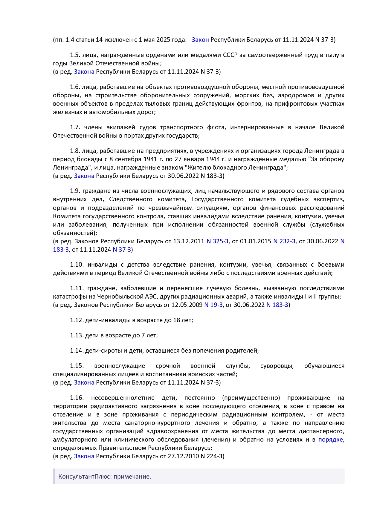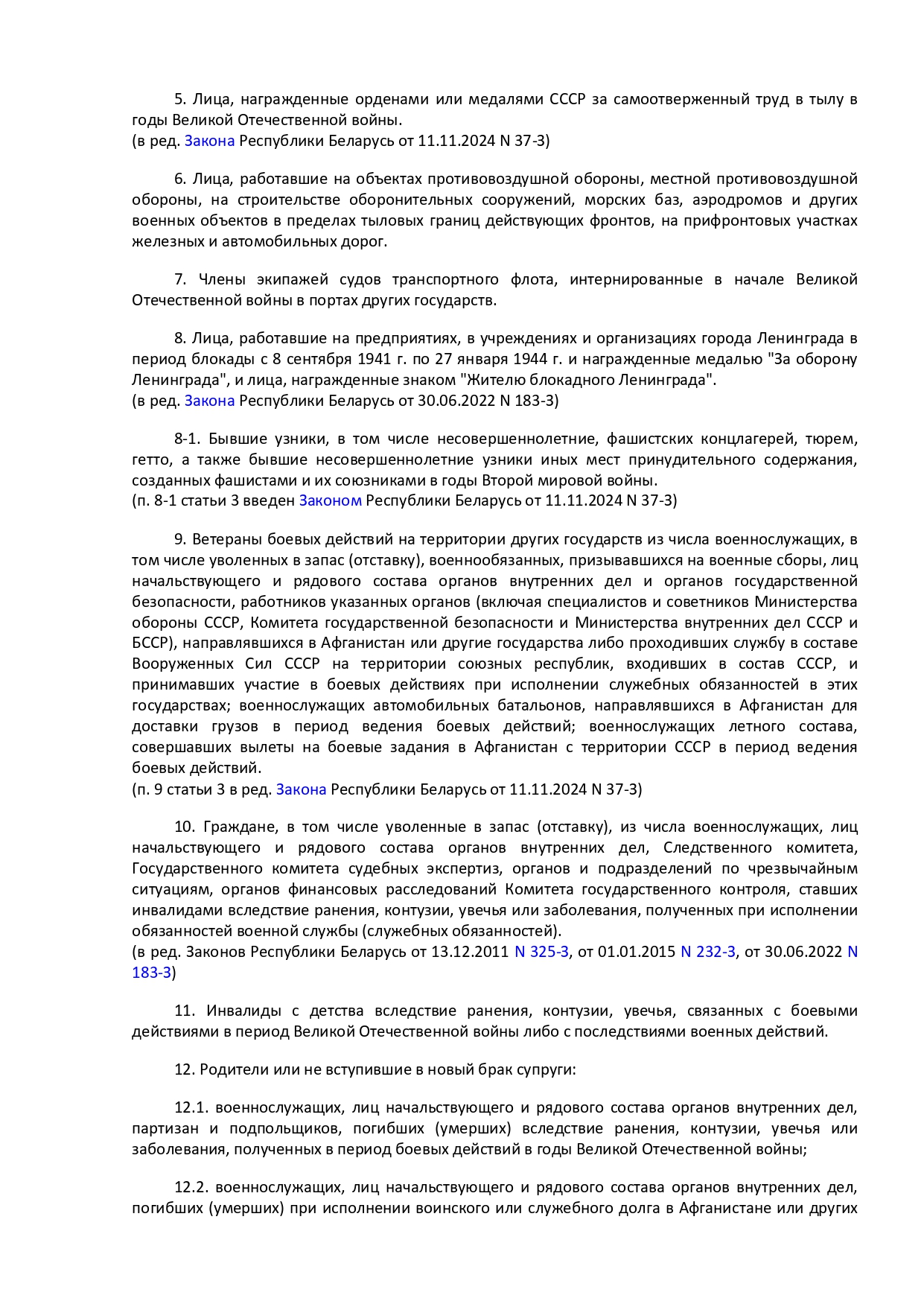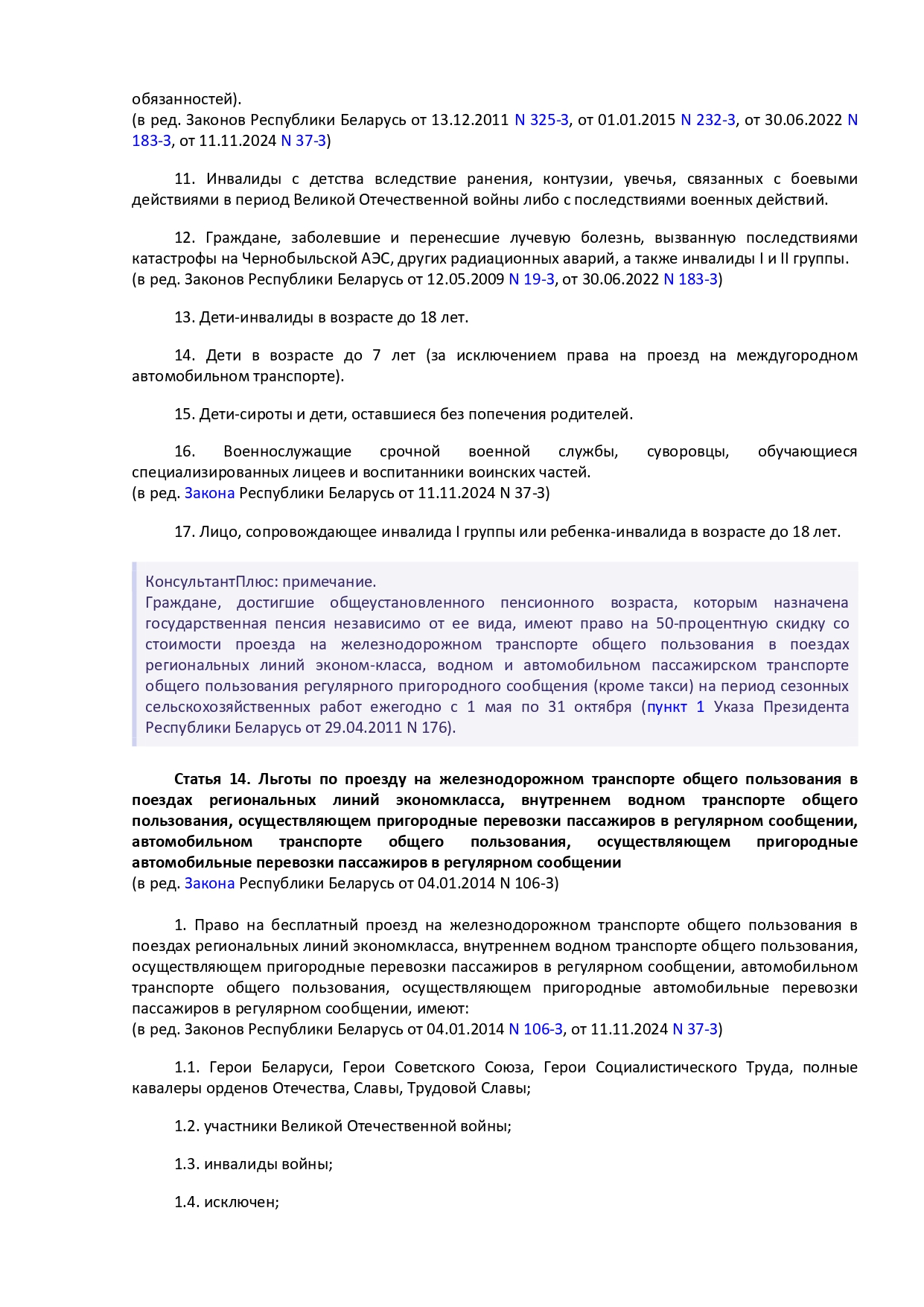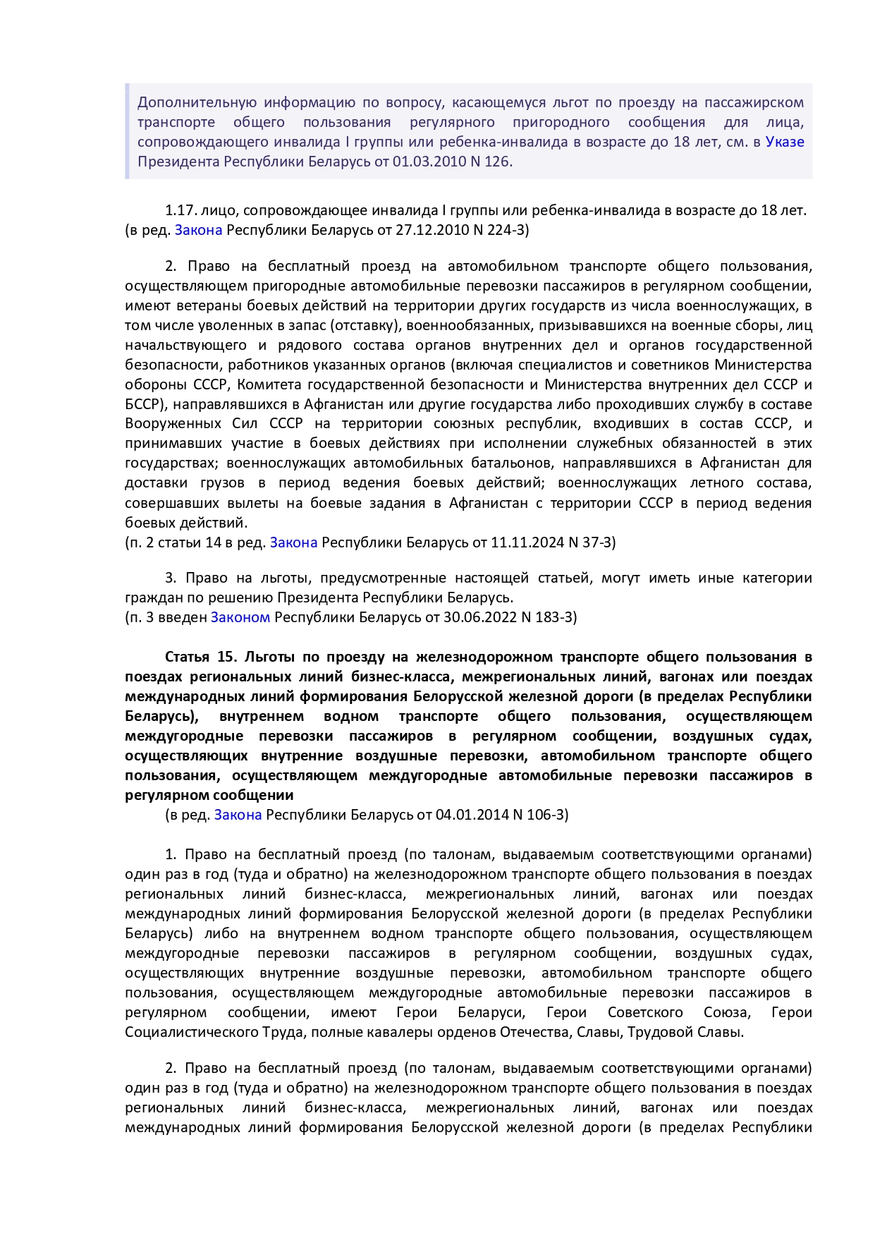 Закон Республики Беларусь от 14 июня 2007 г. № 239-3 "О государственных социальных льготах, правах и гарантиях для отдельных категорий граждан"