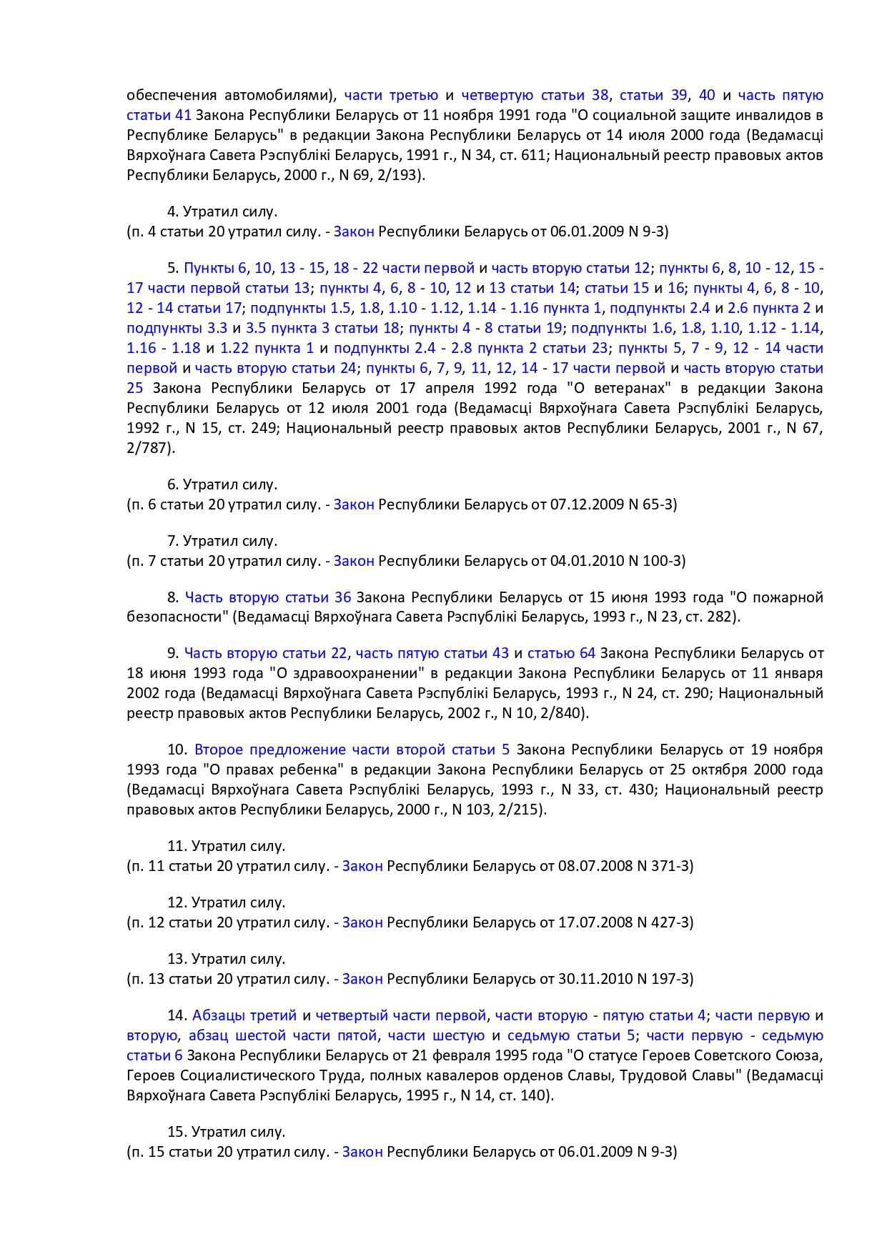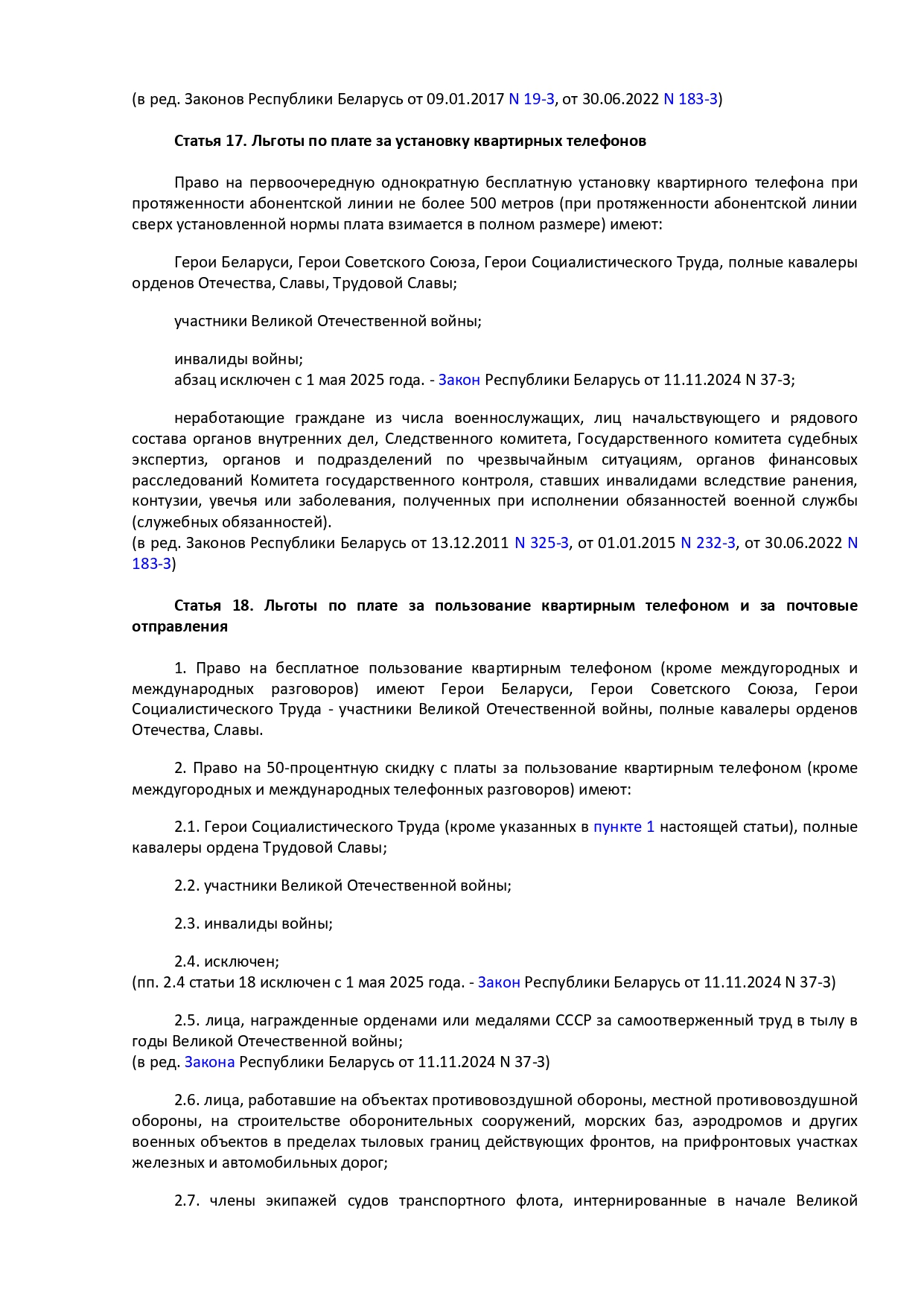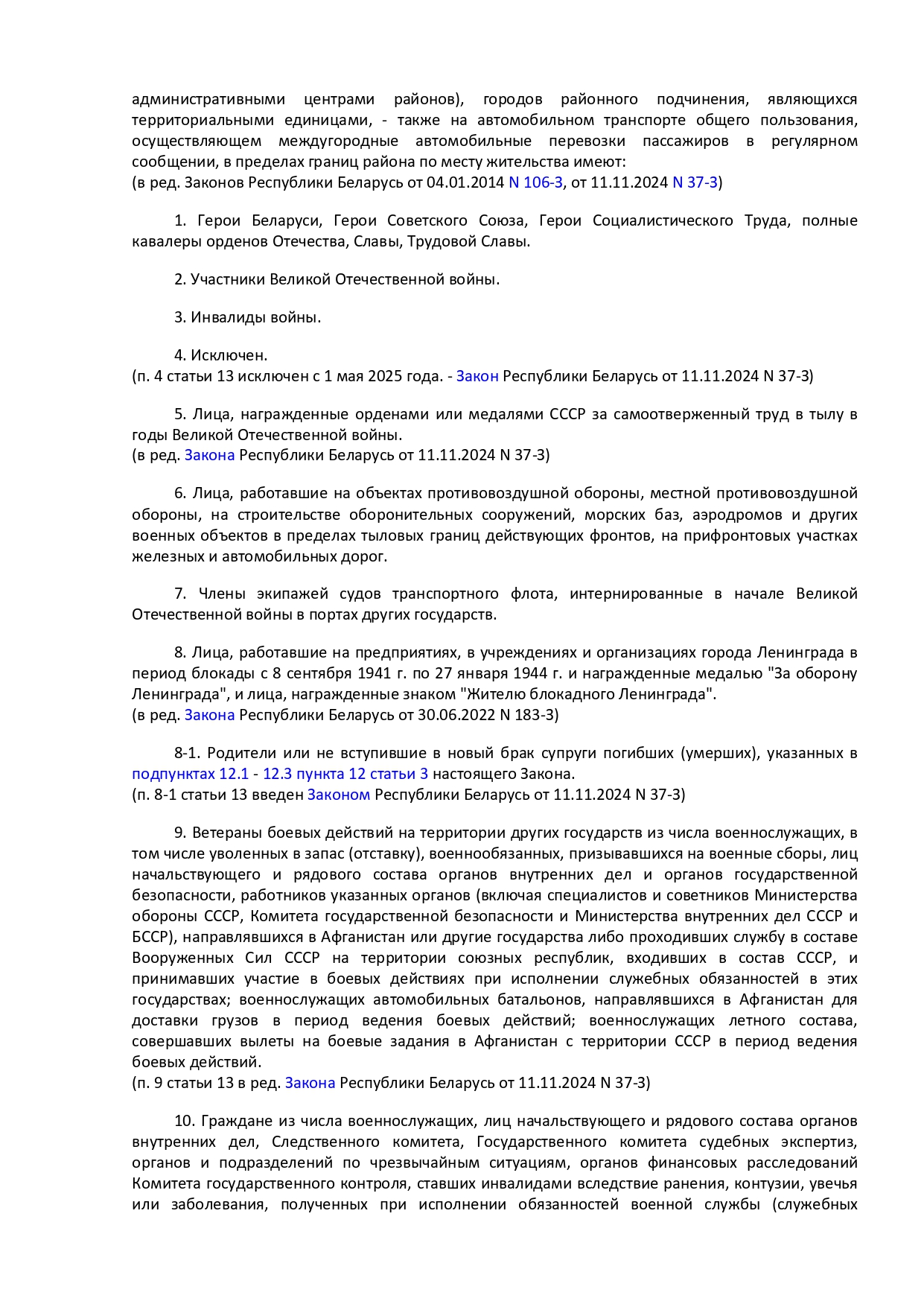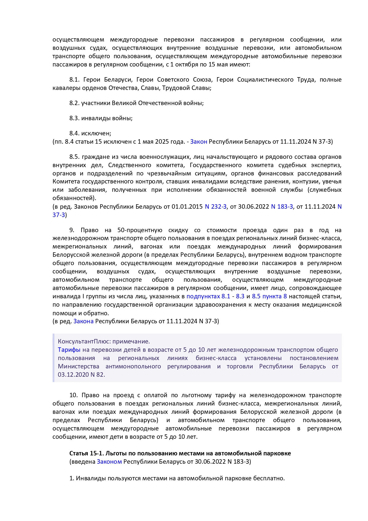 Закон Республики Беларусь от 14 июня 2007 г. № 239-3 "О государственных социальных льготах, правах и гарантиях для отдельных категорий граждан"